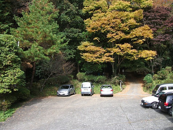 桂谷トンネル横の修禅寺墓苑駐車場。温泉街に近くて無料、休日も比較的空いている。