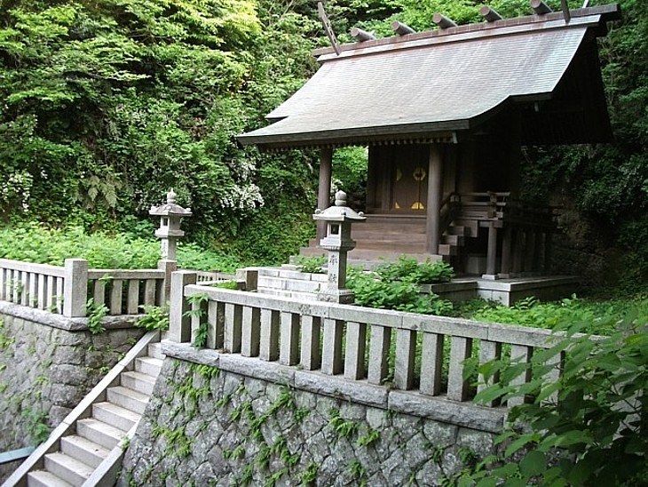 甘縄神明社の拝殿。当時の甘縄邸と神社の位置関係がどうなっていたのかは判らない。