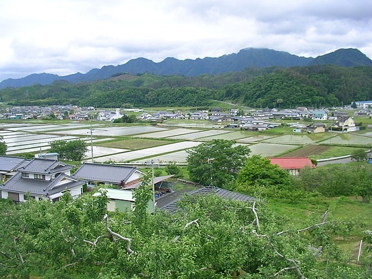 東には田植えを待つ水田。奈良時代には東山道の浦野驛が設置されていた。
