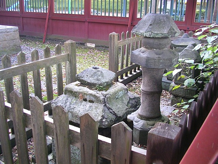 赤御堂裏の源義国の墓所。手前の台座を失った巨大な笠(火輪)が義国五輪塔の残欠だろうか。