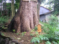 本殿の裏手に聳える楠は樹齢4〜500年程度だが...平安末期に大木だった楠の