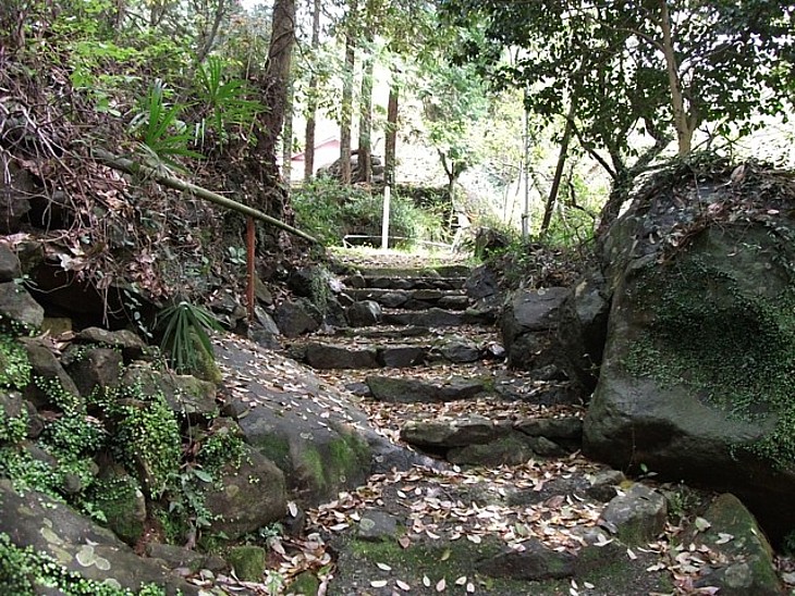 山門を抜け急峻な石段へ。平安時代末期あるいはそれ以前から変っていない風景。