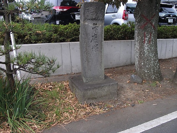 弁慶塚の碑は昭和の建立(元の位置画像はこちら)、左の石(五輪塔か宝篋印塔の頭頂部?)が気にかかる。