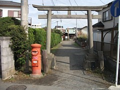 中: 例大祭は毎年2月の初旬、現在は典型的な鎮守の宮として地域に溶け込んでいる。狭い鳥居を抜ける神輿の宮出し風景は YouTube で。