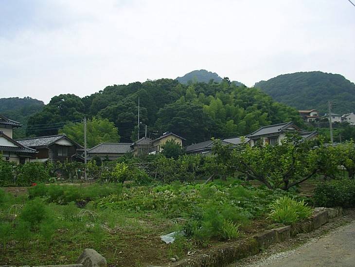 小高い丘の手前が珍場神社、裏手高台の千代田団地の中央が千葉寺跡と推測される。