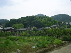 左: 小高い丘の手前が珍場神社、裏手高台の千代田団地の中央公園の近くに寺洞の旧地名があり、安千代が通った千葉寺の跡と推測される。