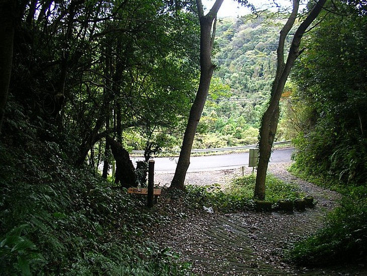 椎の木三本の前を通る旧国道を撮影。昭和初期にここが開通するまでは血塚の前が本街道だった。