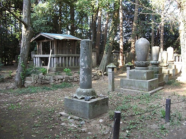 開山堂の裏には覆い屋に保護された古い供養塔や歴代住職の無縫塔が並んでいる。