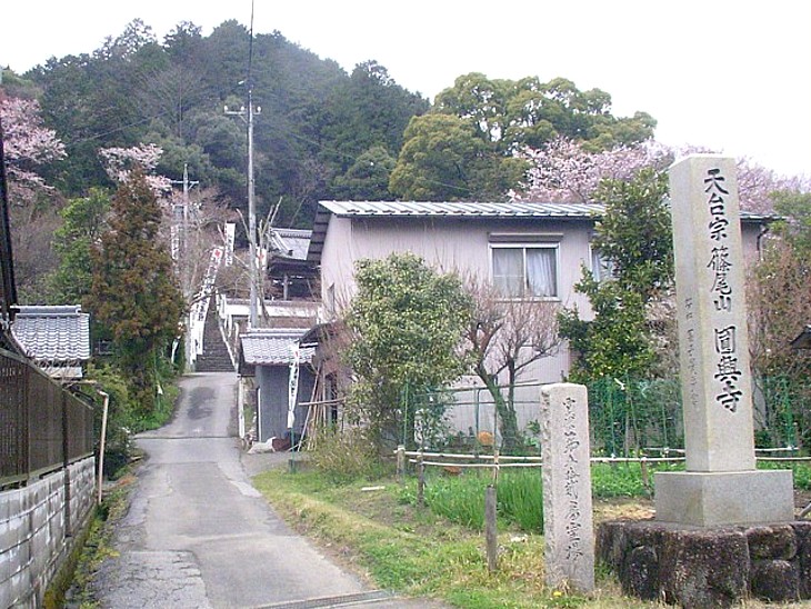 現在の篠尾山圓興寺の参道。承応元年(1652)の元圓興寺の焼失後に1kmほど西側に移転している。