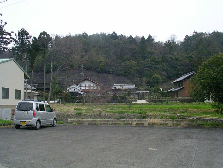 参道の前から見た旧跡の方向。右側の坂下に立派な表参道が、左手に裏参道(近いが、暗くて細い)がある。