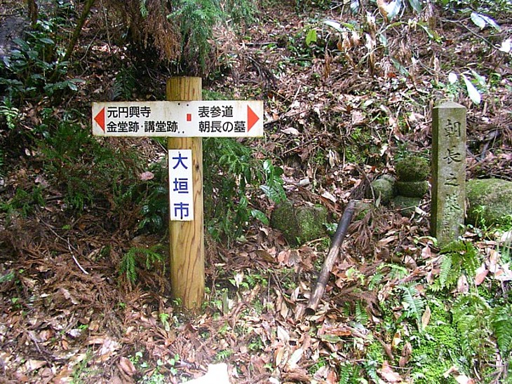 やがて山道は二又に別れ、右は表参道の方向で廟所と山門跡、左へ進むとすぐ元圓興寺の旧跡となる。