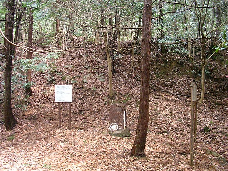 側の高台が鐘楼の跡と伝わる。崩れた石段の痕跡が辛うじて繁栄の時代を思わせる。