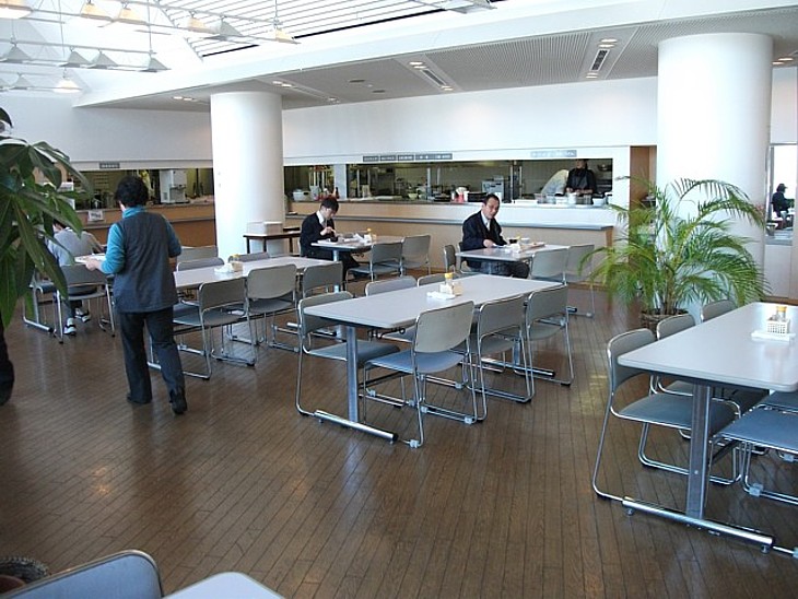 セルフサービスの庁舎内食堂は明るくて雰囲気は良い。一階にも喫茶コーナーがある。