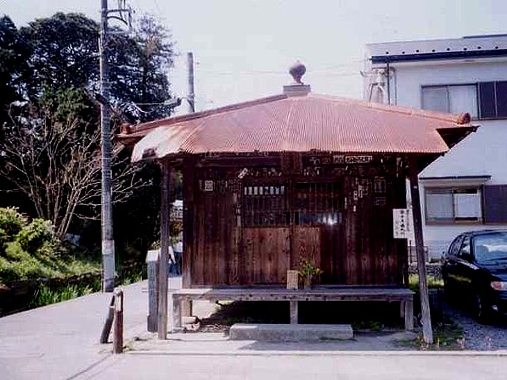 平成13年に再々建する前、朽ち果てそうな地蔵堂。舟形の光背を持つ石地蔵を祀っているのが起源という。