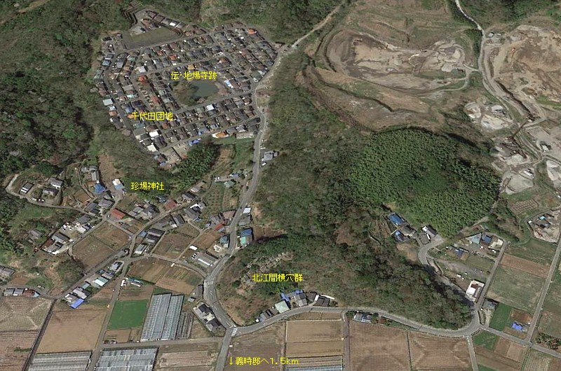 旧・大池跡の上空から見た北江間の鳥瞰。少し右を伊豆中央道(3km・200円)が通っている。