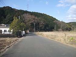 右: 火雷神社の西、民家の裏が田代城址(狩野茂光の外孫・田代信綱の砦)。この山裾を日金に登る旧街道だった。火雷神社の地図は こちら