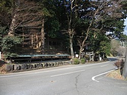 中: 何の変哲もない村の鎮守だが、鳥居の前を丹那盆地に続く断層が走っており、北伊豆地震の傷跡を鮮明に残していることで有名。