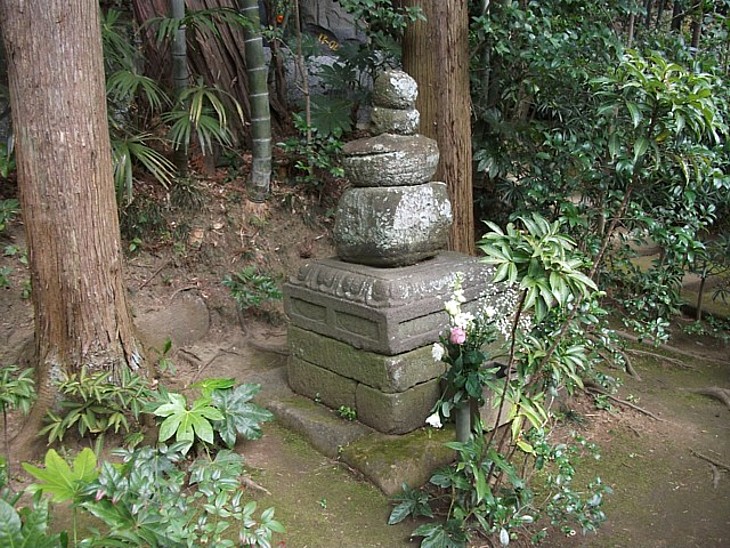 常楽寺開基・泰時の墓石。蓮華座は不似合いに無傷だが全体に劣化欠損が激しい。