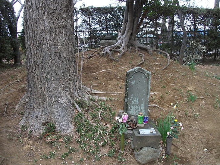 清水冠者義高を葬ったと伝わる木曽塚。元々は少し離れた水田から移設したものらしい。