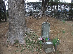 裏山に埋葬し塚とした...とも伝わっている。塚の200m西南=山門の5〜60m左手だが、住宅密集地なので既に昔日の面影はない。