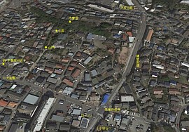 右:鎌倉街道に沿った粟船山常楽寺 鳥瞰 画像をクリック→拡大表示