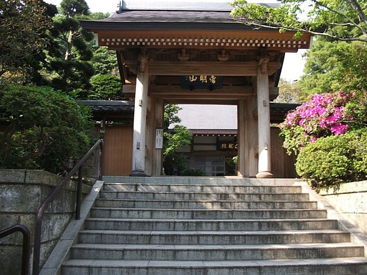 現在の成就院山門。鎌倉時代末期には山門近くを通っていた極楽寺古道に思いを馳せて参拝しよう。