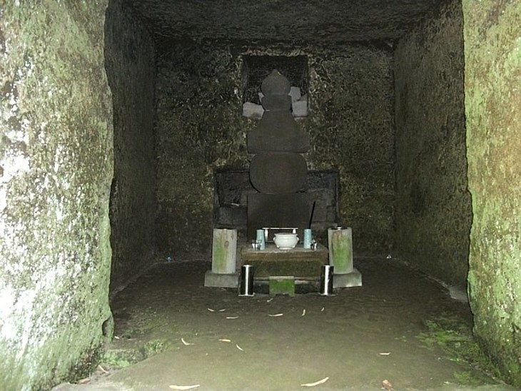 実朝五輪塔のやぐら。実朝の首は秦野に持ち去られたため、これも後世の供養塔である。