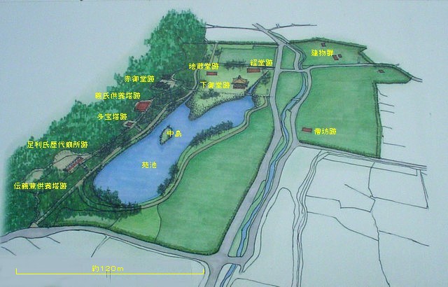 樺崎寺の復元予想図。残念ながら創建当時ではなく、室町時代の姿をモデルにしている。