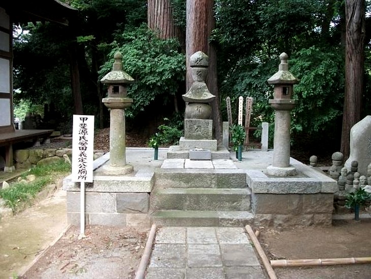 五輪塔正面に「前遠江大守 放光大禅定門」、側面に「源朝臣 保田義定墓」(保田=安田)。