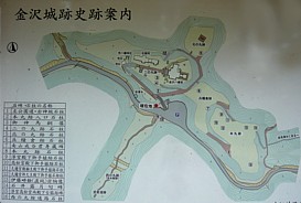 左: 金澤の柵の全体図。道路に沿った駐車スペースのすぐ上が金澤八幡宮、柵の本陣は右手の一角だが、本丸や二の丸は後世の呼称で、
