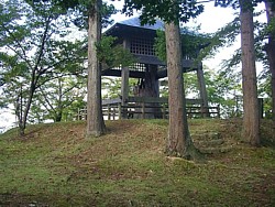 中: 八幡宮裏手の平場が金澤の柵の中枢部分「本丸」の跡。現在でも掘建て柱の跡が残っているという。ただし、室町時代には南部氏の子孫金沢氏が