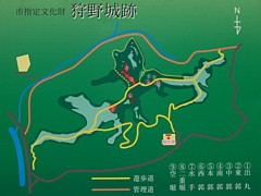 また流人時代の頼朝が訪れた伝承もあり、城址西側の月見山で開いた狩野茂光の観月会には頼朝も再三招かれた、と。狩野城址の地図は