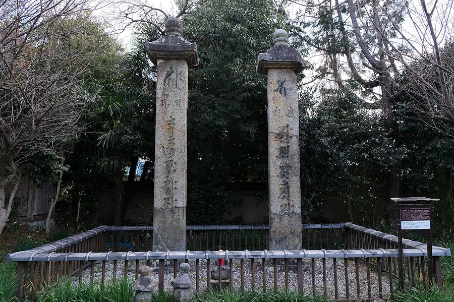 奈良般若寺の重要文化財 笠塔婆。各々阿弥陀三尊と釈迦三尊の梵字を彫り、下部に銘文を刻む。