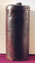 金銅製の筒の表面には善願上人の履歴と共に「敬愛する祖父 (景廉) の墓所に埋めて欲しい」旨が刻まれている。