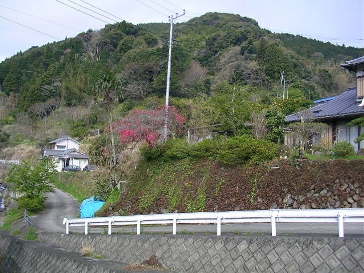 小鍋集落から義朝山を。周辺は道路が狭いため途中の空き地などに駐車する方が良い。