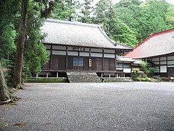中: 本堂の左を進むと右側に畠山国清と上杉憲顕の墓所、曲がらずに直進すると20mほどで開山である国清を祀る開山塔がある。