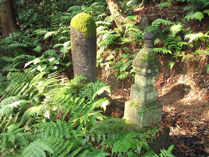重盛宝筐印塔のから1mほど左下に一回り小さな得律禅尼の墓石がある。左側の無縫塔の素性は不明。
