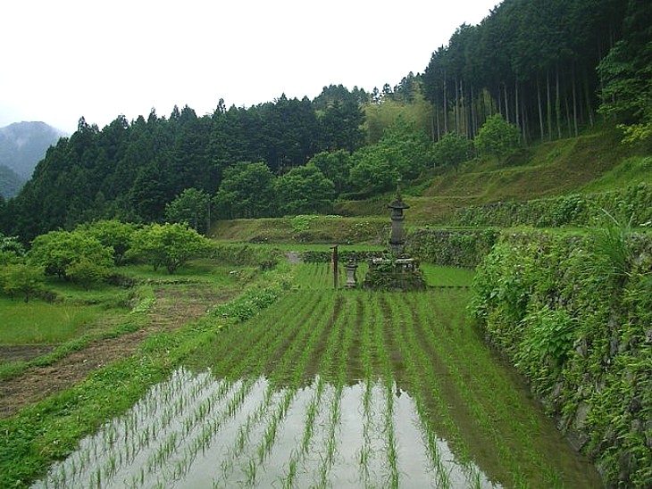 墓所のある1枚は田植えが終わっていたが周辺の殆どが休耕田で荒れている。