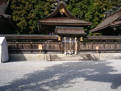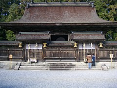 左: これは中央の第三殿。祭神は家都美御子大神、本地仏として阿弥陀如来を祀る。後で知ったのだが、神域は基本的に撮影禁止だった。