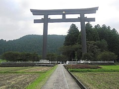 遠くから目を惹く巨大な鳥居は巾42m・高さ34m、平成12年に完成したコンクリート製である。