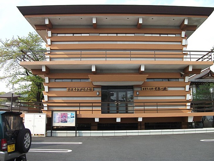 平成十五年に新装の板碑保存館。長年収集と保存に尽力した板碑など膨大な史料を展示する。