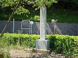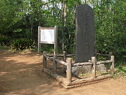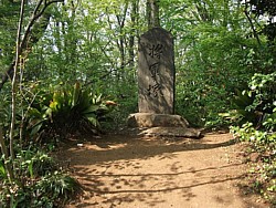 中: 左側は八国山遊歩道の入口に近い西宿公園の東京都指定旧跡・久米川古戦場碑。平成十年三月東京都教育委員会の建立による。
