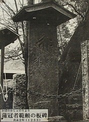 の板碑」と書いてあったから何かと思ったら北本の東光寺の「石戸蒲桜」の根元にあった板碑だ。今は資料館に収蔵してある筈で、範頼の