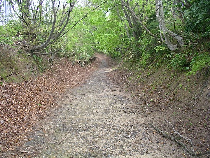 倶利伽羅峠を西に向う北陸古道の跡。現在の富山と石川の県境にある砺波山の峠である。