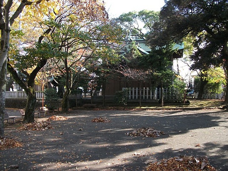 社の裏は地域センター、鳥居の前は現在の下田街道から100mほど西を通る古道だ。
