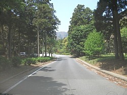 左: バス通りが幕山に向って緩やかに登る。周囲には静かな環境を生かした民宿や旅館が建ち並び、別荘や立派な保養所も点在する。