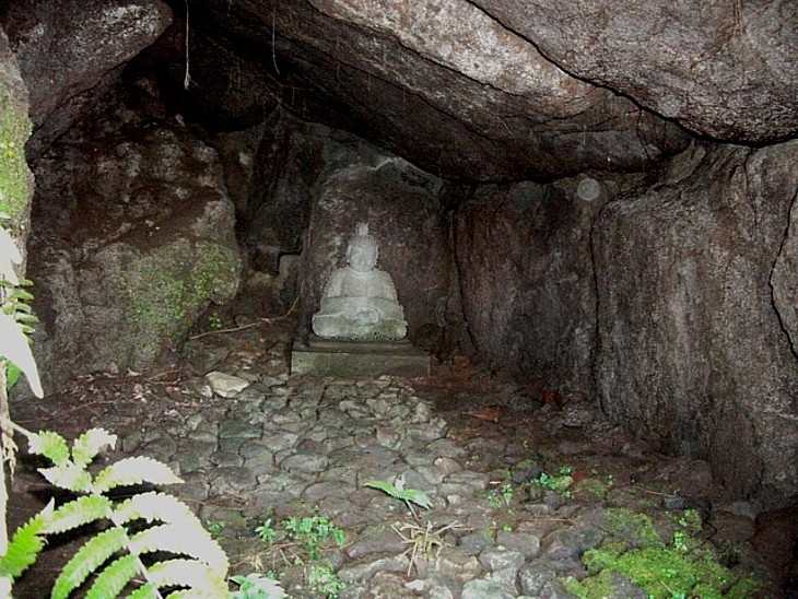 昔は奥行10mの規模だったが現在はその半分ほど、奥に仏像(阿弥陀如来?)を祀る。