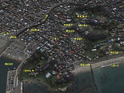 左: 腰越漁港のある小動岬が片瀬東浜(江ノ島側)と七里ガ浜の境界。満福寺は岬の北に点在する「龍口寺輪番八ヶ寺」の南端に位置する。
