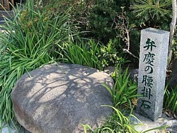 中&右: 観光地定番の展示品、弁慶の手玉石と腰掛け石。こういうのを見ると「誰の発想だろう、たぶん江戸時代なんだろうな」と考えてしまう。