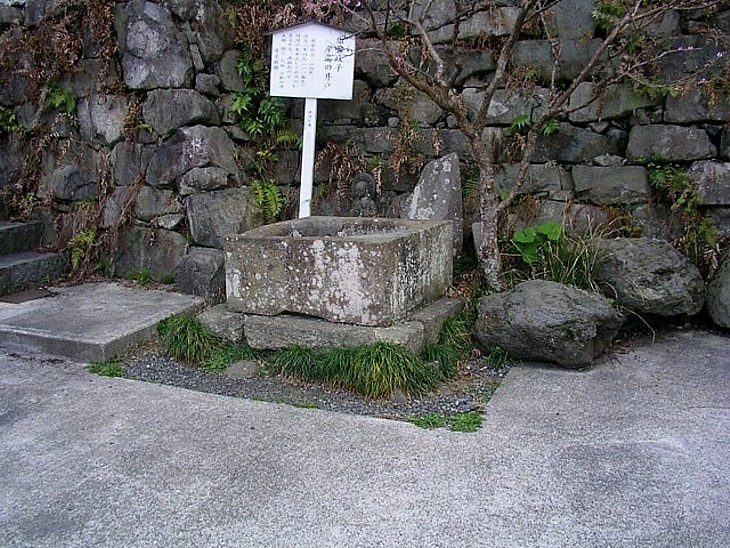 民有地にある「産湯の井戸」。100mほど国道側に観光用の無料駐車場が利用できる。